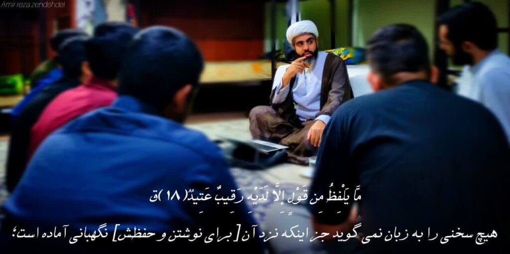 ۱.شناخت دائمالوقفه : همیشه به یاد داشته باشید که هیچ کلمهای بیثبت نمیماند (إِلَّا لَدَيْهِ رَقِيبٌ عَتِيدٌ) زبان پردهای بر درگاه جان شماست هر سخنی درون شما را فاش میکند.